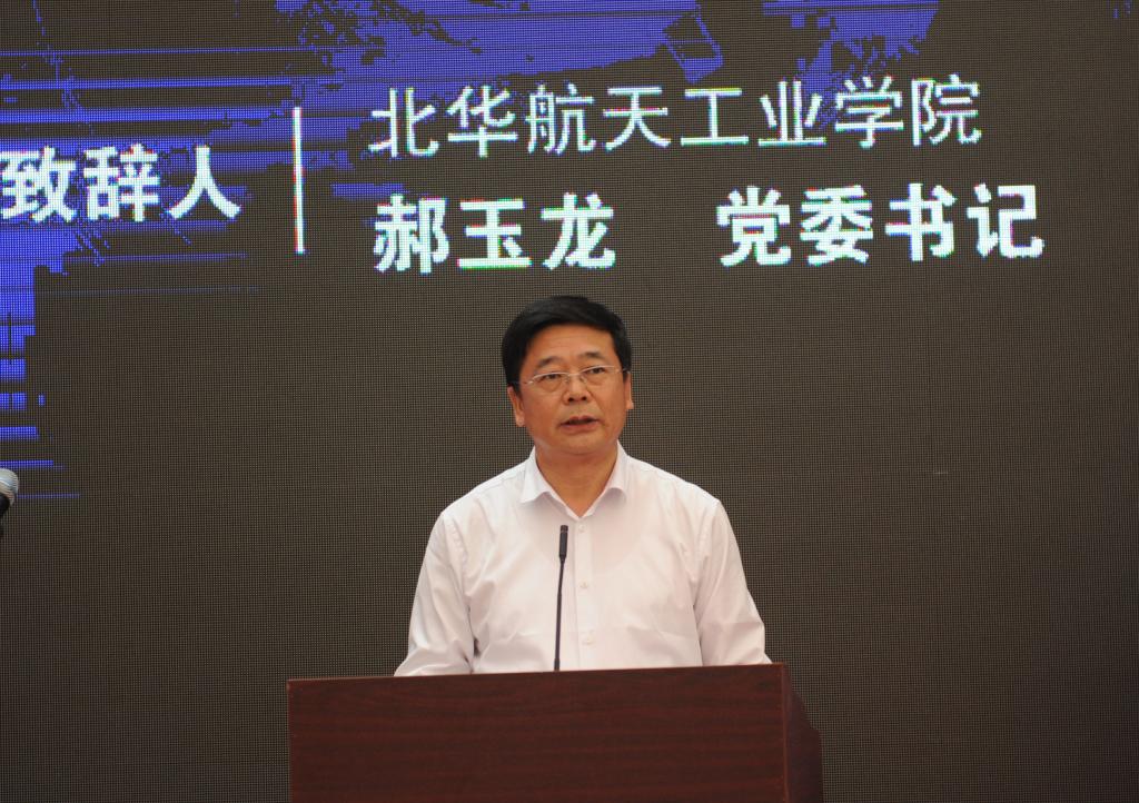 北華航天工業(yè)學(xué)院全體在校校領(lǐng)導(dǎo)參加活動(dòng),黨委書記郝玉龍?jiān)陂_幕式上致辭。