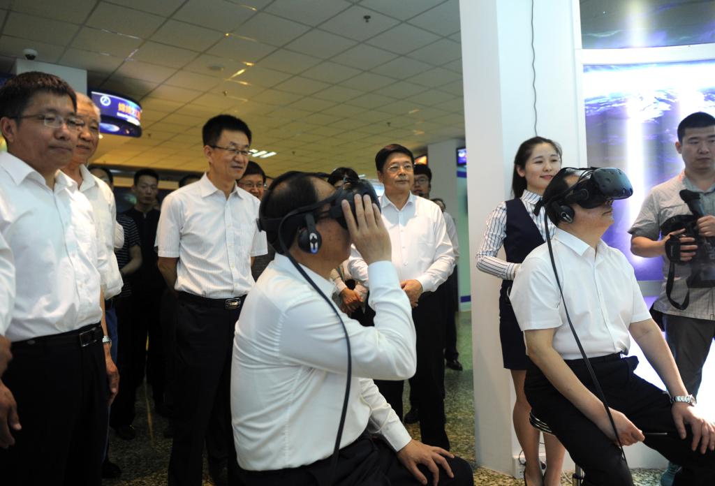 省市領(lǐng)導(dǎo)在華航航天博物館用VR技術(shù)體驗(yàn)火箭發(fā)射實(shí)景