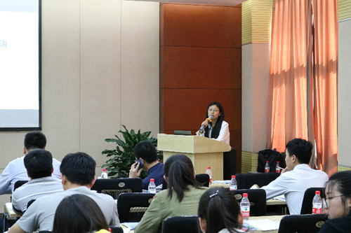 圖為科技局科技創(chuàng)新處張玉潔進(jìn)行知識(shí)產(chǎn)權(quán)政策宣講