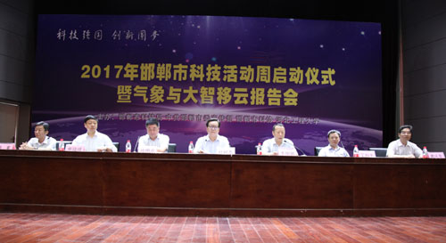 啟動(dòng)儀式結(jié)束后,與會(huì)代表參觀了河北工程大學(xué)分析測(cè)試中心、大學(xué)生創(chuàng)新創(chuàng)業(yè)園、機(jī)器人創(chuàng)新團(tuán)隊(duì);特邀邯鄲市氣象局蔡守新副局長(zhǎng),為全市科技局系統(tǒng)和河北工程大學(xué)師生代表作了“氣象與大智移云”報(bào)告會(huì),由此拉開(kāi)了2017年邯鄲市科技活動(dòng)周的序幕。