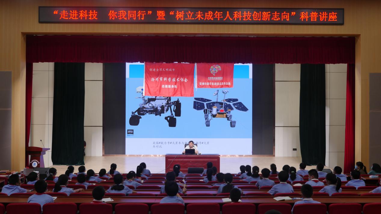 “走進(jìn)科技 你我同行”暨“樹立未成年人科技創(chuàng)新志向”科普講座現(xiàn)場(chǎng)。 滄州市科學(xué)技術(shù)局供圖